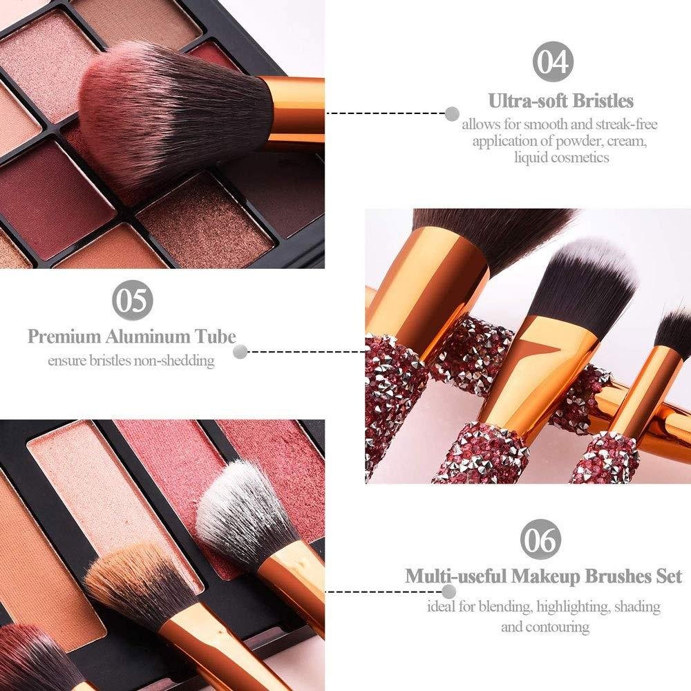 This glitz and glam essentials makeup brushes are rhinestone makeup brush set Premium synthetic foundation powder concealers eye shadows professional beauty cosmetic brushes with bag for face make up tools.