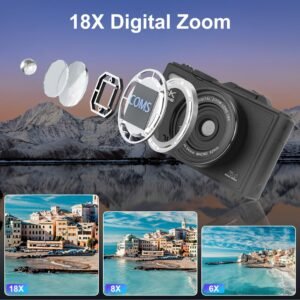 • *18X Optical Zoom & Fill Light*: Get up close to distant subjects with 18X optical zoom(no blurry digital cropping!). Built in a fill light,our autofocus video camera brightens dark spots(parties,low-light interiors),while anti-shake keeps shots steady—great for handheld recording or zoomed-in photos.