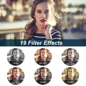 • *9 Versatile Camera Modes & 19 Creative Filters*: This 5K vlogging camera allows you to dive into fun shooting with 9 modes:single shoot,timed shoot,auto shoot,video,loop recording,burst,slow motion,time-lapse,and even “Video + Photo”(record while snapping pics!). Spice up your content with 19 filters—try “Antique” for retro vibes,”LOMO” for moody tones,or “Japanese Color” for soft aesthetics.