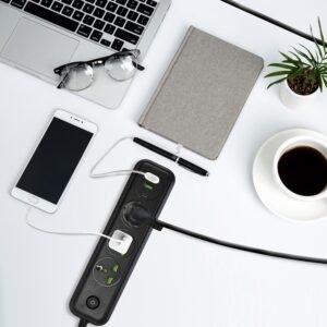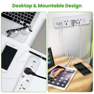 • *Wall Mounted Design*: With the thickness of 1.18in,this power strip can be easily placed in narrow corners. The 2 rear mounted holes make our wall power strip suitable for mounting on wall or under desk,providing a seamless and well organized power distribution system. A practical assistant for office,home,dormitory,travel,hotel,etc..