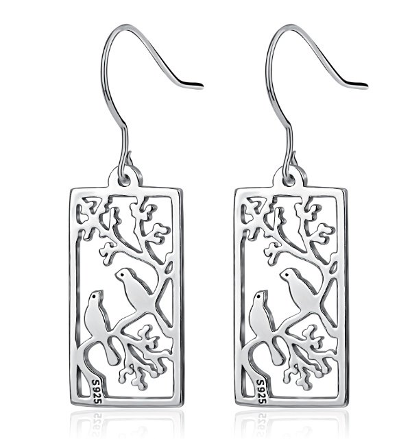 925 Silver Earrings Hollow Out Bird Painting