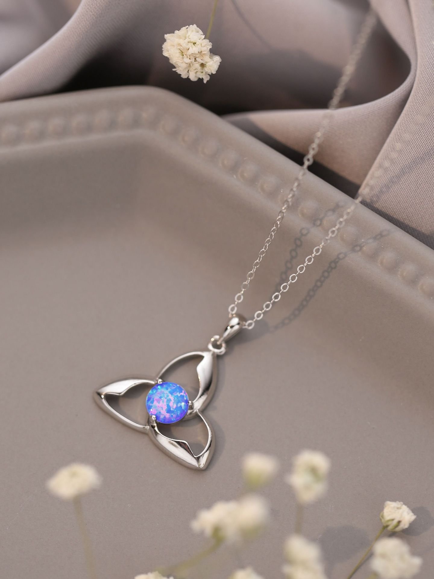 Be the first to review “925 Silver Pendant White Round Opal Necklace”