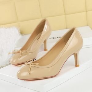 Be the first to review “Bow-tie Round-toe High Heels Womens Low-cut Pumps”