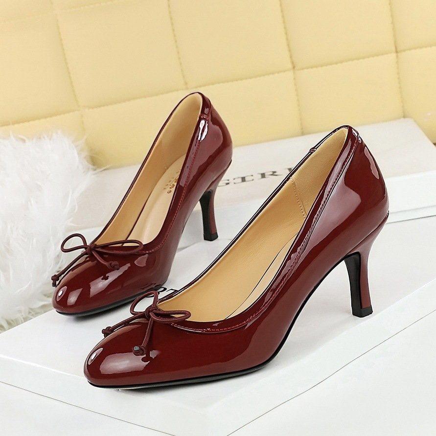 Bow-tie Round-toe High Heels Womens Low-cut Pumps