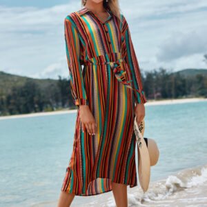 Be the first to review “Cover The Flesh And Show The Thin Color Striped Beach Skirt Seaside Vacation Long-Sleeved Sun Protection Clothing Long Shirt Swimsuit Coverall Jacket”