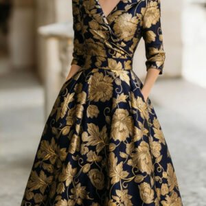 Be the first to review “Elegant Womens V-Neck Long-Sleeve Dress With A Floral Creative Retro 3D Digital Print”