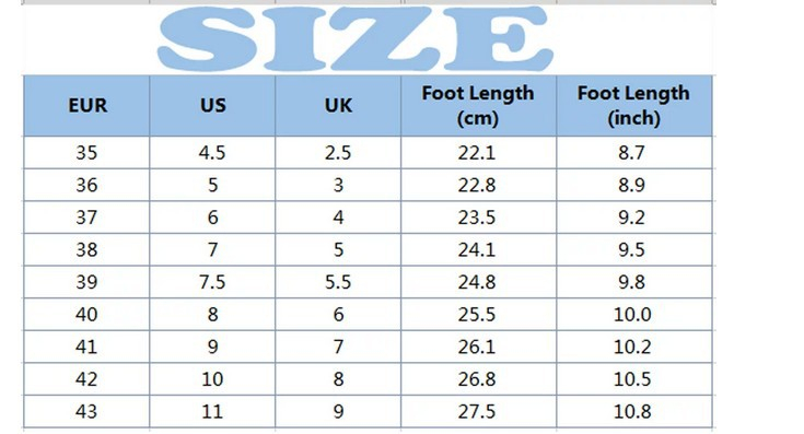 Sizes: 34, 35, 36, 37, 38, 39, 40, 41, 42, 43