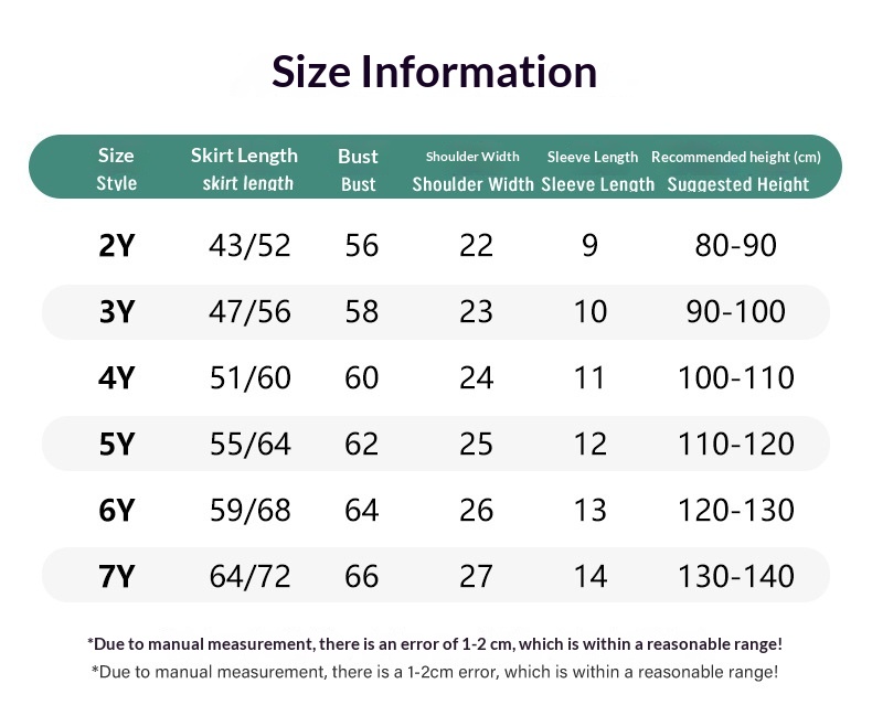 Suitable Height: 2Y (90 cm), 3Y (100 cm), 4Y (110 cm), 5Y (120 cm), 6Y (130 cm), 7Y (140 cm)