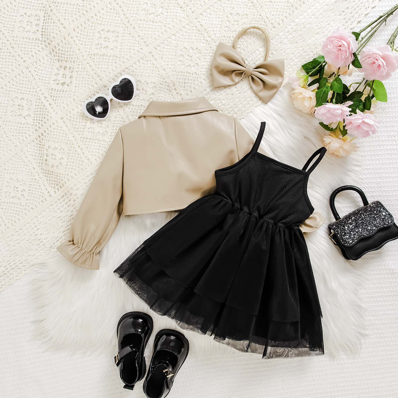 Leather jacket *1+ suspender skirt *1+ hair accessories *1