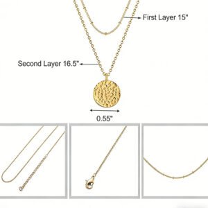 2.LAYERED NECKLACE MATERIAL–The layered necklace made of brass with 14k gold plated, Nickel Free,pretty layered necklace set, sparkly and dainty! delicate choker, personalized bar necklace and an elegant disc necklace!