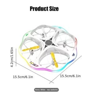 This UFO-shaped drone features 360° intelligent obstacle avoidance and colorful lights as its core highlights. It adopts a fully enclosed protective structure and is equipped with gesture-sensing control. It is not only a safe and easy-to-play children’s toy but also a trendy gadget full of a sense of technology, making the flying experience more reassuring and cool.