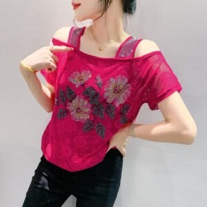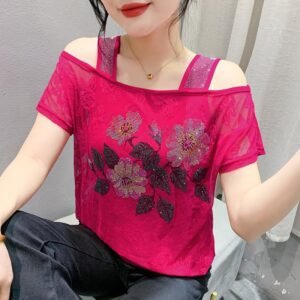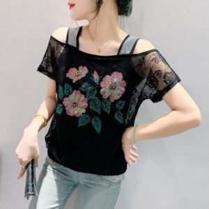 Be the first to review “Lace Off-the-shoulder Rhinestone Top”