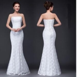 Features: tailored tail wedding dress