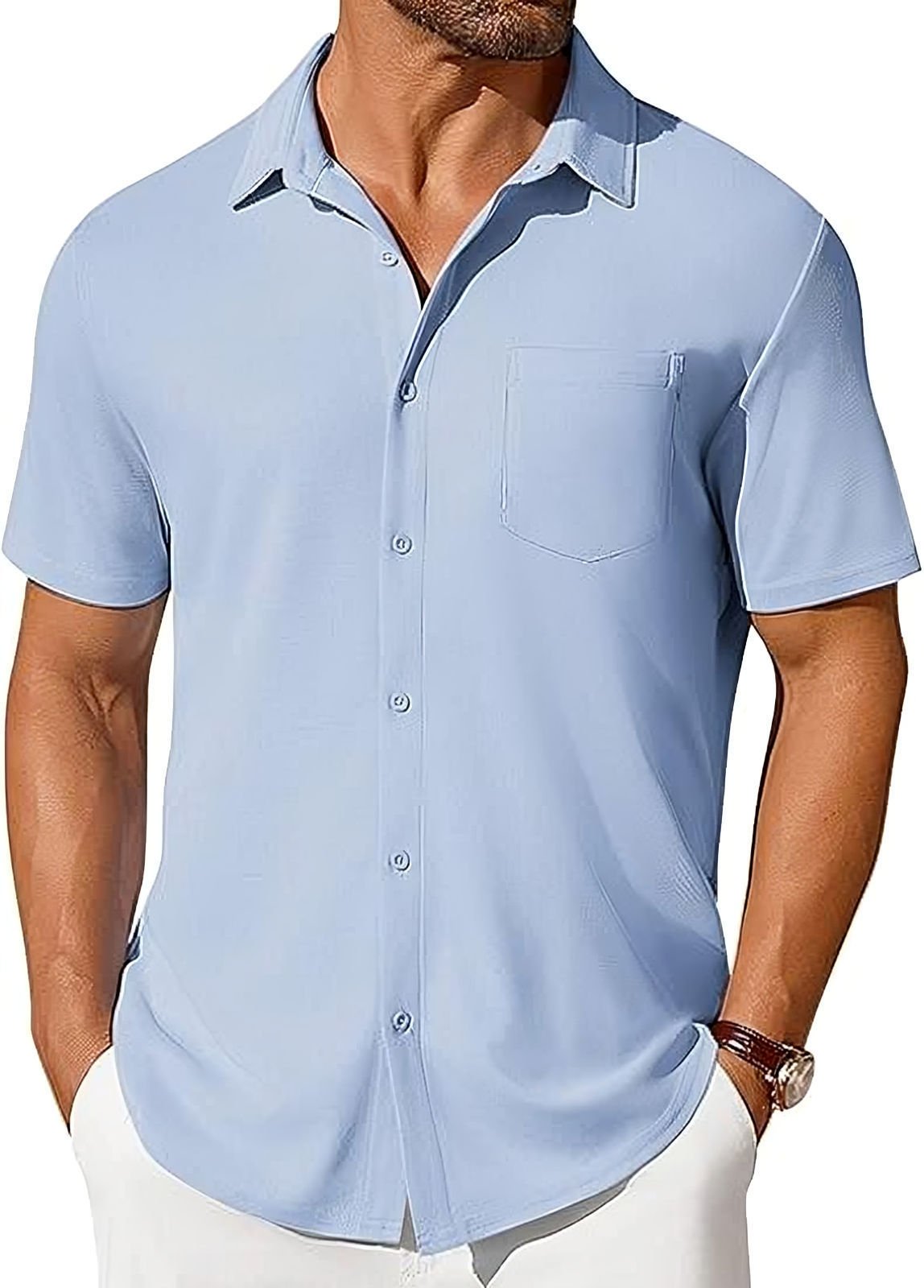 Mens Short-sleeve Button-up Wrinkle- And Crease-resistant Shirt