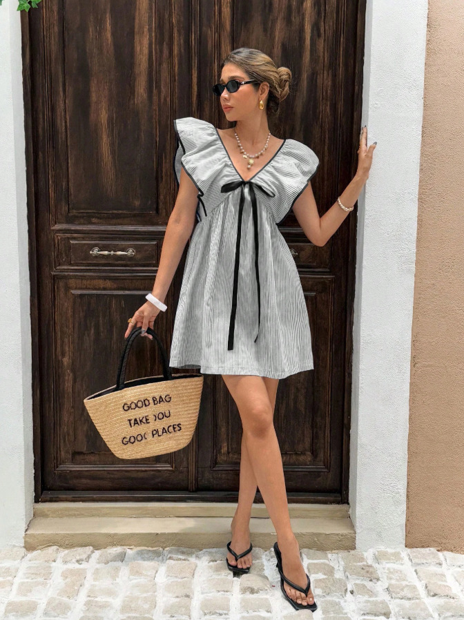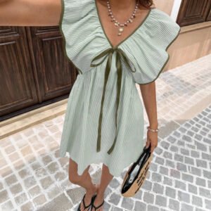 Be the first to review “New V-neck Ruffled Flutter-sleeve Dress”