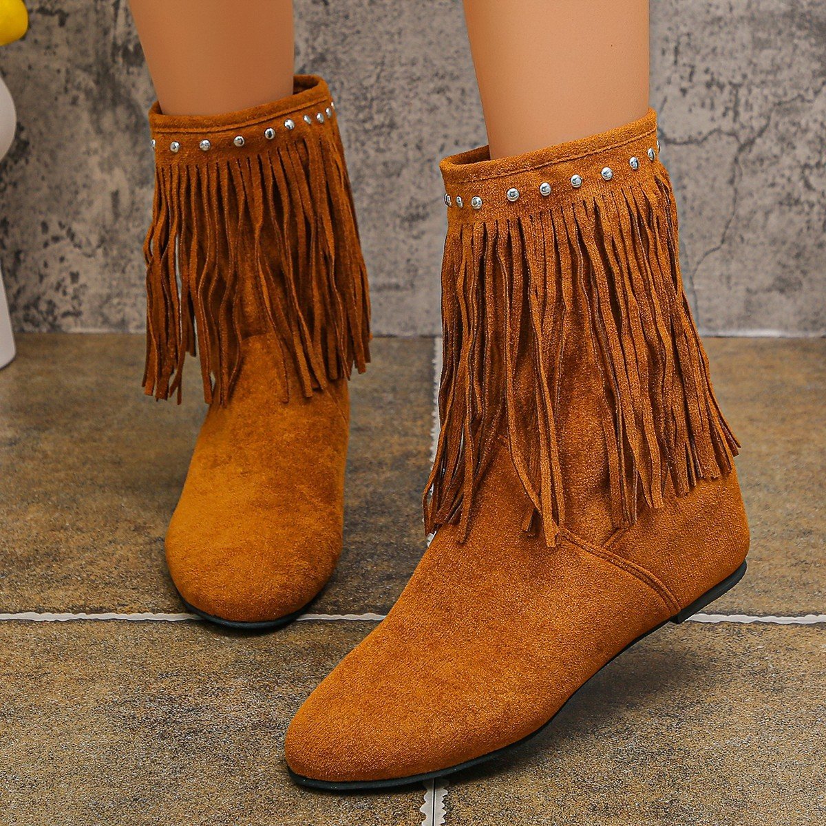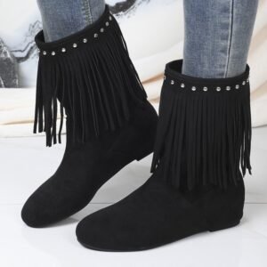Be the first to review “Plus Size Studded Suede Tassel Boots For Women”