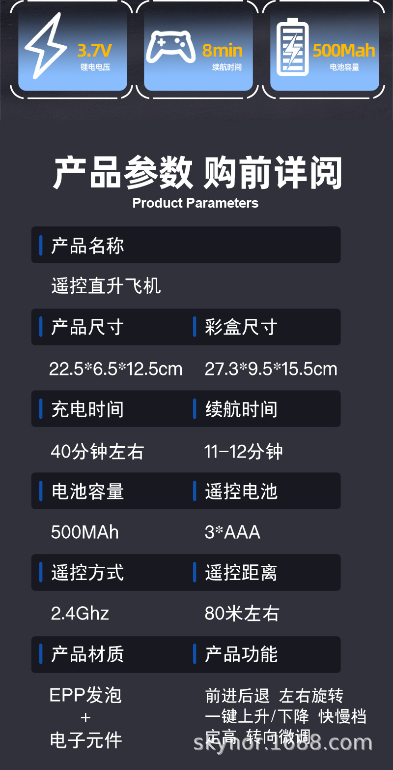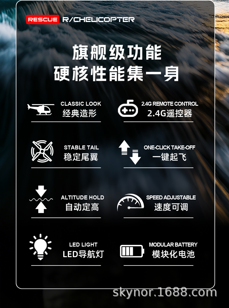 Special Features: Navigation lights, USB charging, drop-resistant, forward flight, remote control with handle, backward flight, hovering, 3D flips, impact-resistant, leftward flight, rightward flight, barometric altitude hold, one-button takeoff and landing, durable rotor blades