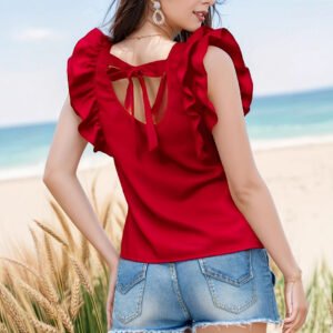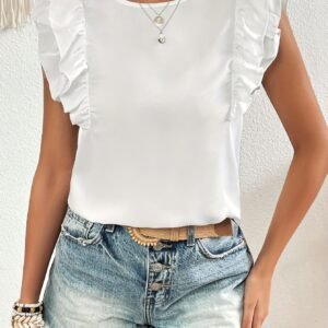 Be the first to review “Round Neck Sleeveless Shirt Ruffle Sleeve Pleated Elegant Lady”