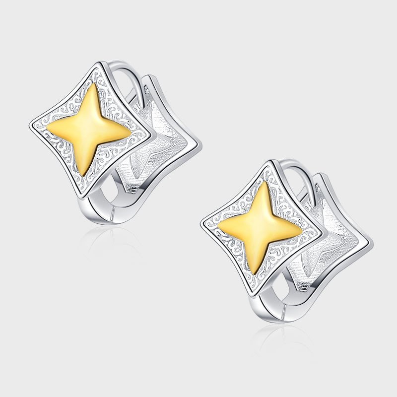 Be the first to review “S925 Sterling Silver Gold Silver Contrast Four Bright Star Old Flower Tang Grass Ear Buckle Earrings”