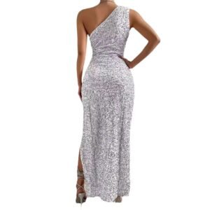 Be the first to review “Sexy Sequined Shoulder Sleeping Beauty Split Solid Color Dress”