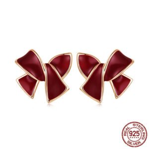 Be the first to review “Silver Ziyun Original Wine Red Bow Stud Earrings”