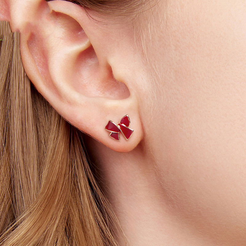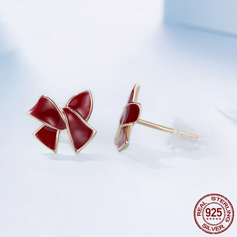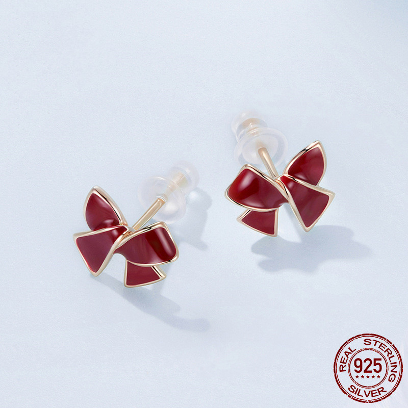 Silver Ziyun Original Wine Red Bow Stud Earrings