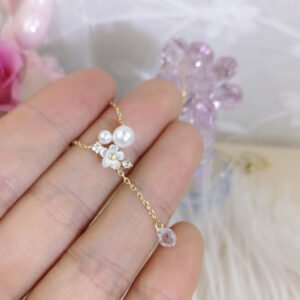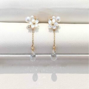 Size: small flower 6mm pearl 4mm small pearl 2mm small diamond 1mm Crystal is raindrop shape 4mm total length 3cm Necklace: 42+5cm extension chain