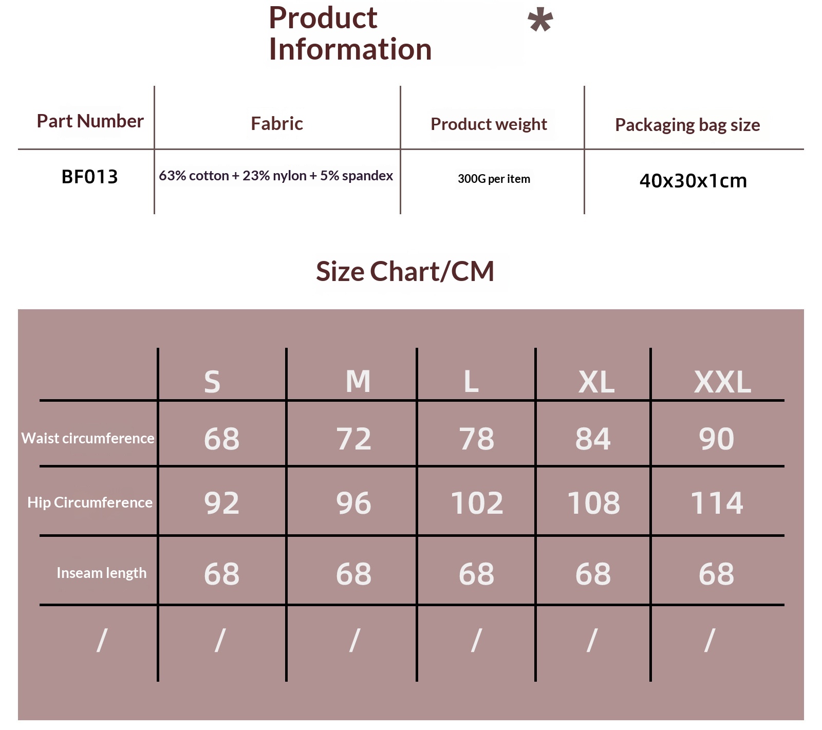 Sizes: S, M, L, XL, XXL