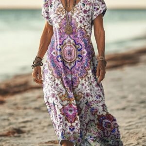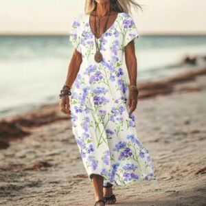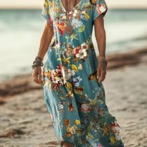 Be the first to review “Womens Floral V-Neck Short-Sleeve Dress”